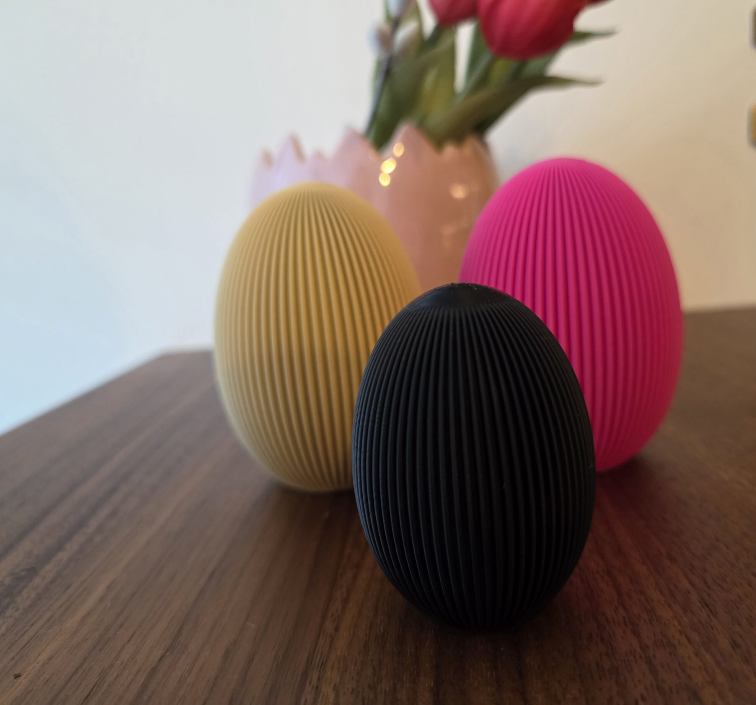 „Schicke Ostereier in geriffelter Optik als Dekoration“